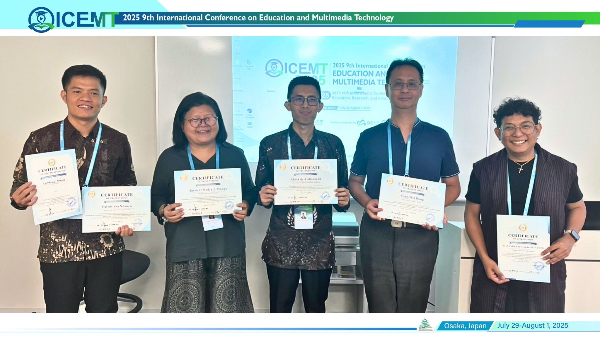 The 15th International Conference on Education, Research and Innovatio (ICERI 2025) was successfully held in Osaka, Japan from July 29 to August 01, 2025. The conference gathered scholars, researchers, and practitioners from around the world to share advances in theoretical, experimental, and applied education.