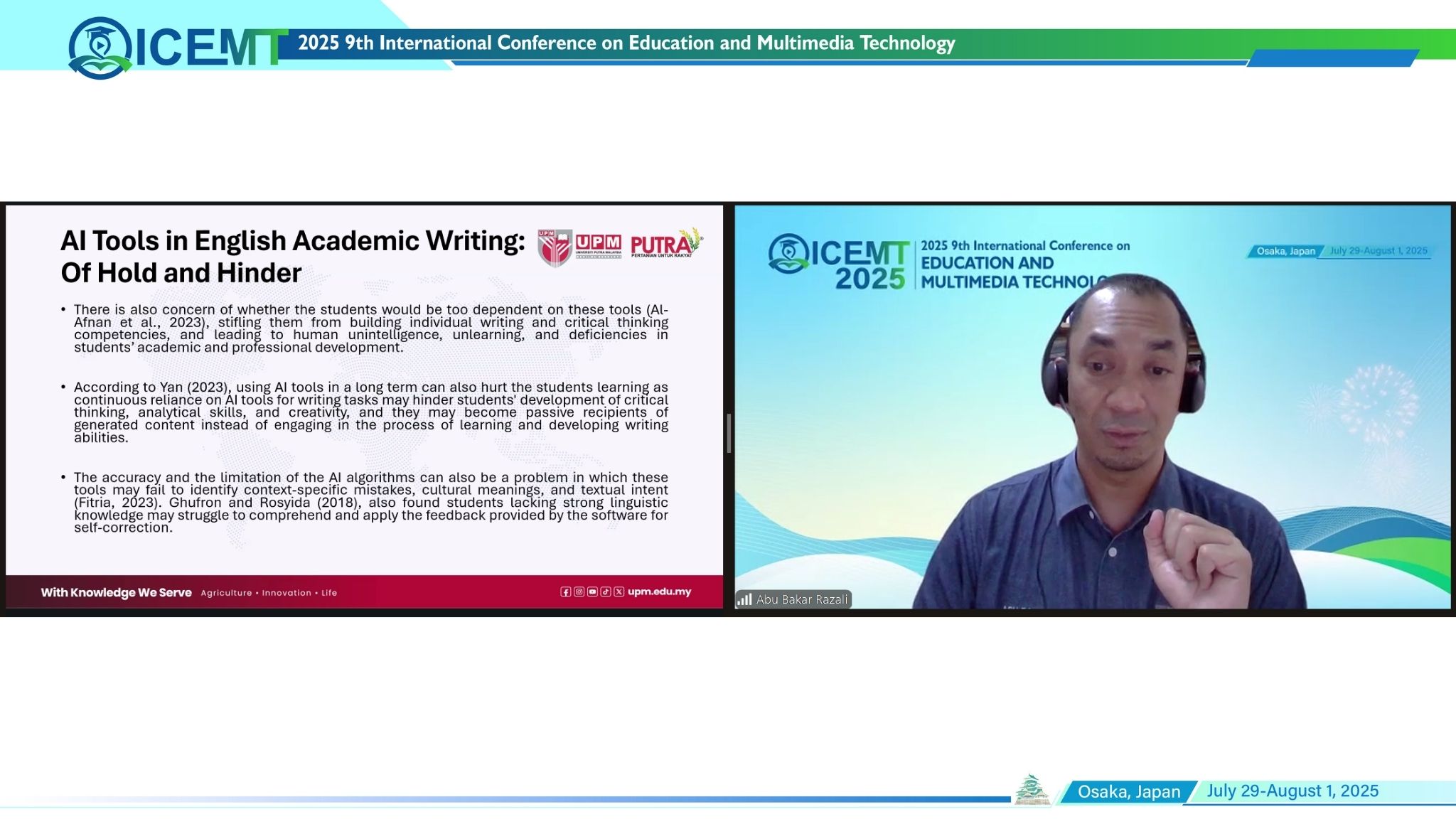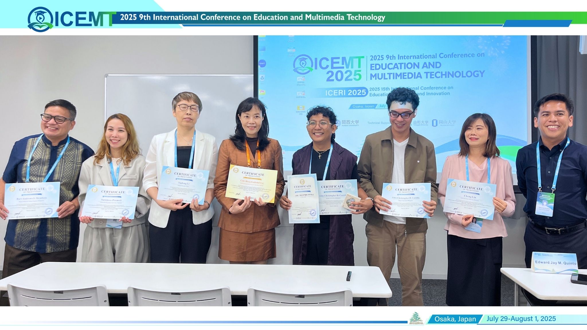 The 15th International Conference on Education, Research and Innovatio (ICERI 2025) was successfully held in Osaka, Japan from July 29 to August 01, 2025. The conference gathered scholars, researchers, and practitioners from around the world to share advances in theoretical, experimental, and applied education.